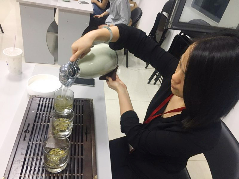 在隨后的茶藝培訓(xùn)里,劉琴老師更是細(xì)致的講解了不同茶的不同沖泡手法,通過現(xiàn)場呈現(xiàn)的方式讓大家對不同品類的茶葉有了更顯性的對比。溫杯、洗茶、泡茶、奉茶這幾個(gè)基本步驟是每一種茶葉的基本泡制步驟,參加培訓(xùn)的人員現(xiàn)學(xué)現(xiàn)泡,在劉琴老師的指導(dǎo)下泡茶,并互相奉茶,品茶,呷茶入口,頓覺口鼻生香,借茶香茶韻,一種淡泊謙和的意境油然而生。