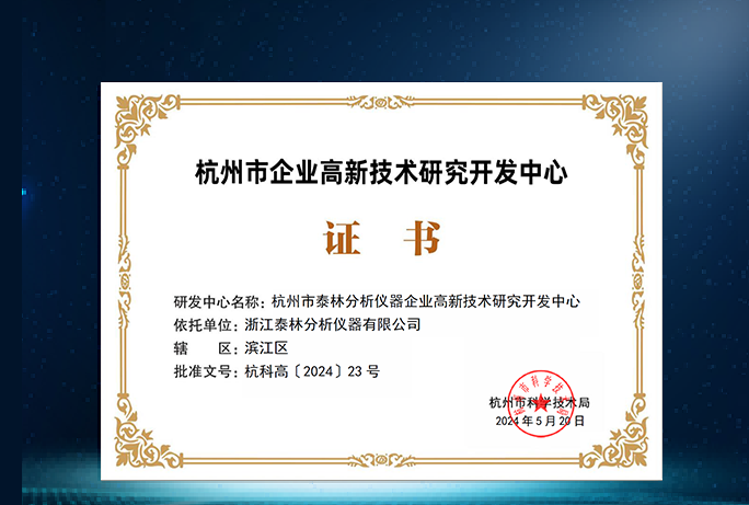 創(chuàng)新實(shí)力再獲肯定!泰林分析榮獲杭州市企業(yè)高新技術(shù)研究開(kāi)發(fā)中心認(rèn)證