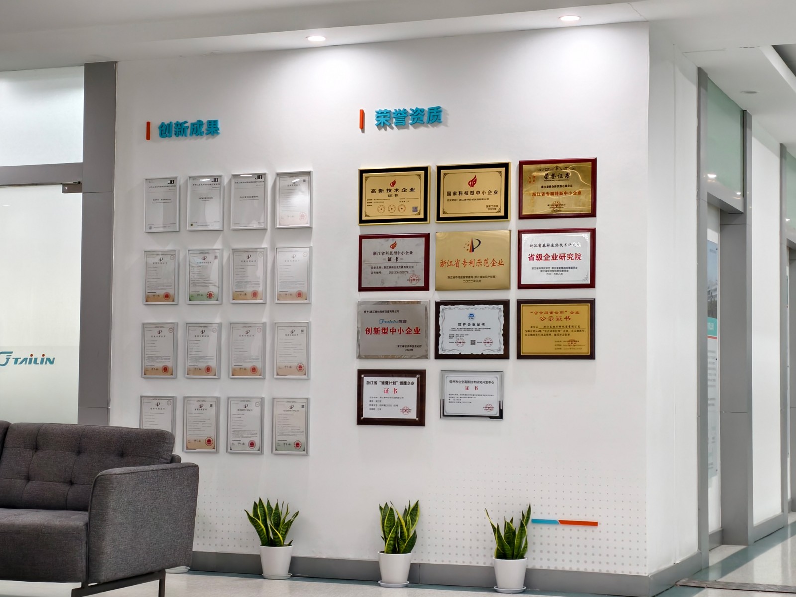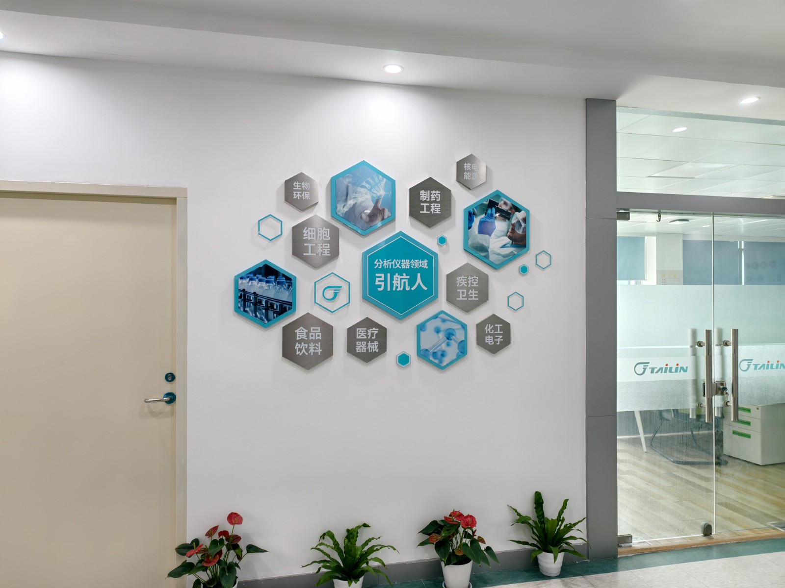 除此之外,分析儀器子公司內(nèi)部的裝潢也煥然一新。一樓大廳形象墻全面升級,企業(yè)標識醒目突出,空間視覺更顯敞亮開闊,彰顯企業(yè)大氣風范;移步二樓,參觀路線經(jīng)過精心優(yōu)化,新增榮譽墻與員工風采展示板塊,將員工成就與企業(yè)輝煌交相輝映,彰顯團隊凝聚力;沿途的形象燈箱設(shè)計更為簡約明亮,照亮訪客探索之旅。